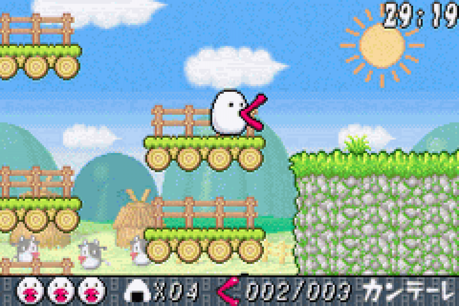 Hachiemon sur Game Boy Advance est un jeu d'action/aventure où tu incarnes Hachiemon, parti à la recherche des lèvres de ses amis. Récupère-les dans le temps imparti sur chaque niveau ! Ces lèvres ne servent pas seulement d'arme pour attaquer, mais aussi à t'accrocher aux murs, sauter et réaliser de nombreuses autres actions.