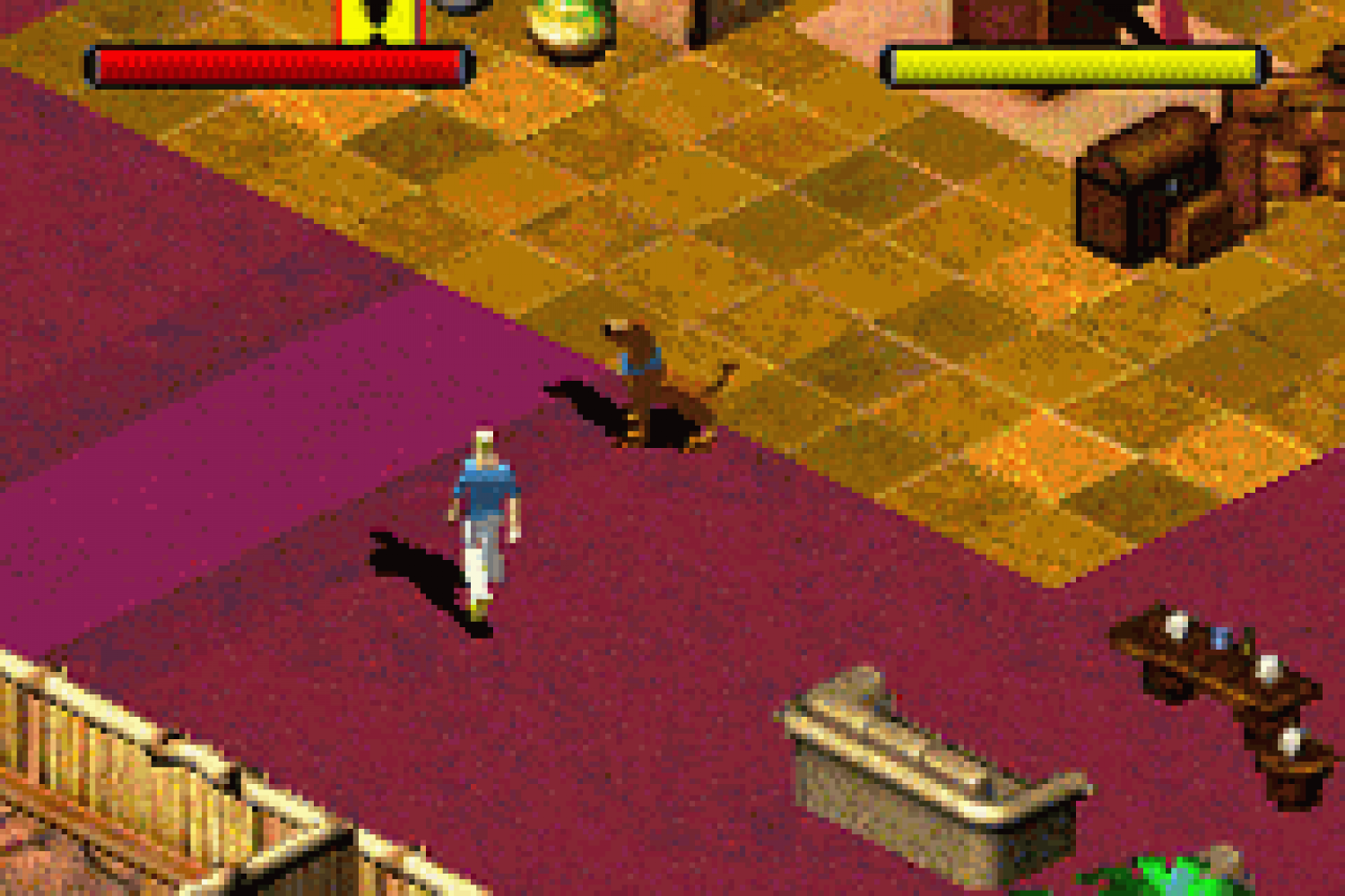 Scooby-Doo sur Gameboy Advance est un jeu d'aventure adapté du film du même nom. Un fantôme effraie les clients du Spooky Island, le patron de l'île fait donc appel à la fameuse Mystery, Inc. Vous commencez l'aventure avec Scooby-Doo ou Sammy. L'équipe s'étoffe par la suite, chaque personnage apportant une capacité unique au jeu.