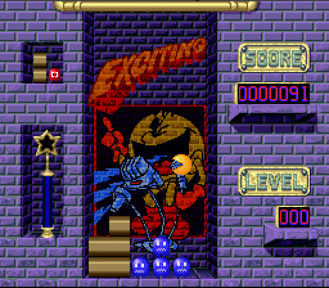 Pac-Attack est un jeu à la Tetris sur Super Nintendo reprenant le personnage Pac-Man. Des blocs de différentes formes descendent, composés de morceaux de ligne unicolores, de fantômes et du fameux Pac-Man. Le but étant de faire des lignes avec les morceaux, tout en dévorant avec Pac-Man les fantômes qui font obstacle. Un mode Versus permet d'affronter l'ordinateur ou un autre joueur.