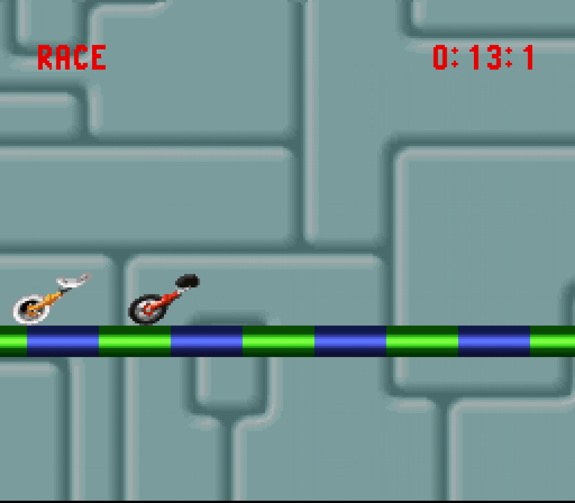 Unirally sur Super Nintendo est un jeu de courses dans lequel le joueur dirige un monocycle. Le but est autant d'aller très vite et finir premier que de faire les figures les plus improbables possible. En mode Courses, le but est d'arriver en tête, et chaque figure correctement réalisée vous fait gagner de la vitesse. Un mode Figures permet de se concentrer uniquement sur les tricks, dans ce cas il faut marquer plus de points que son adversaire pour espérer l'emporter.